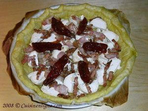 Rajoutez la mozzarella, les lardons et les tomates confites.