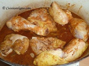 Remettez les morceaux de poulet sur les oignons, puis versez le bouillon.